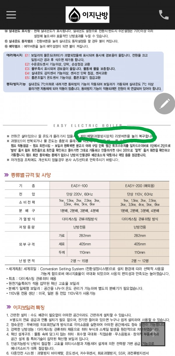 위 설명처럼 설정한 물 온도로 상승하지 않을 경우 바이메탈 중앙의 버튼이 튀어나와 있으며, 이 버튼을 눌러주시면 똑 들어가는 느낌이 있으실 겁니다.