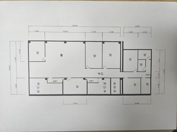 여러 공간으로 구분되어 있고 넓어서 평면도를 같이 보내드립니다.